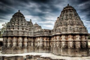 Marvel at the Hoysala architecture at Belur Temple, an ancient temple filled with intricate carvings and detailed sculptures. -