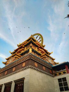 Discover the enchanting Tibetan-style Golden Temple, one of the largest teaching centers of the Nyingma lineage of Tibetan Buddhism in India. Experience its peaceful ambiance and colorful architecture. -